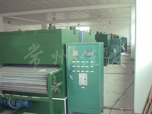 物料由加料器均勻地鋪在網(wǎng)帶上,網(wǎng)帶一般采用12-60目不銹鋼絲網(wǎng),由傳動裝置拖動在干燥機內(nèi)移動。干燥機由若干單元組成,每一單元熱風(fēng)獨立循環(huán),部分尾氣由專門濕風(fēng)機排出,廢氣由調(diào)節(jié)閥控制,熱氣由下往上或由上往下穿過鋪滿物料的網(wǎng)帶完成熱量與質(zhì)量傳遞的進程,帶走物料的水份。網(wǎng)帶緩慢移動,運行速度可根據(jù)物料溫度自動調(diào)節(jié),干燥后的成品連續(xù)落入收料器中。上下循環(huán)單元根據(jù)用戶需要可靈活配備,單元數(shù)量亦可根據(jù)需要選取。
