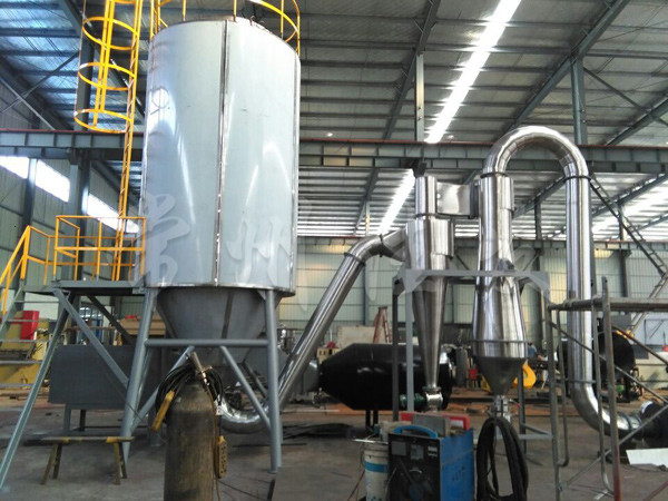 This machine atomizes the material into small droplets through a hydraulic pressure nozzle, and completes drying by convection with hot air inside the tower to obtain granular products.